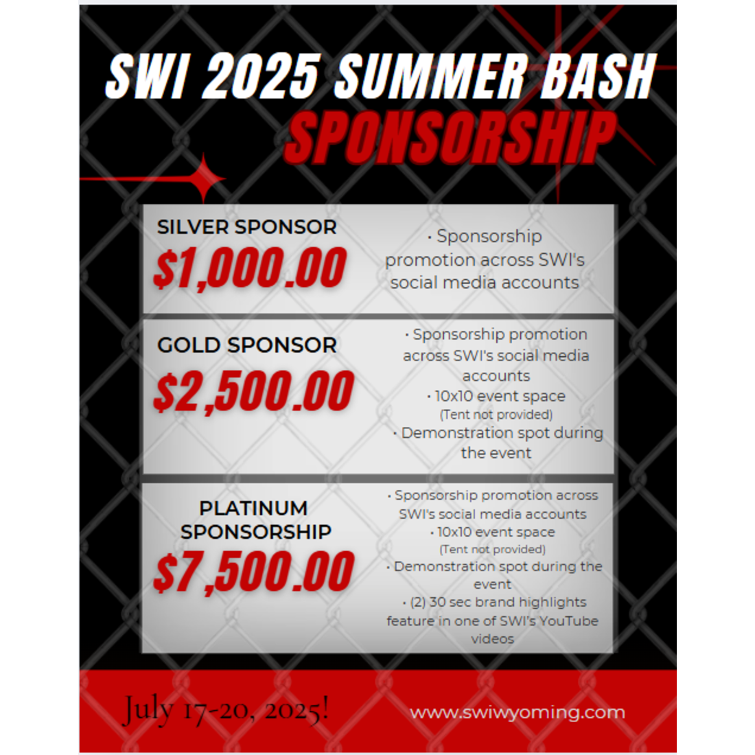 • Sponsorship promotion across SWI's social media accounts